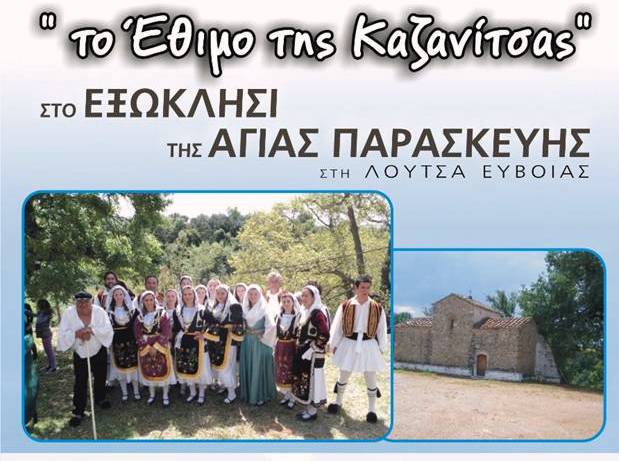 Ο Πολιτιστικός και Εξωραϊστικός Σύλλογος Λούτσας συνδιοργανώνει με το Δήμο Διρφύων- Μεσσαπίων το έθιμο της Καζανίτσας στο εξωκλήσι της Αγίας Παρασκευής στη Λούτσα.