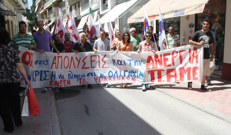 Ξεχωριστή συγκέντρωση πραγματοποίησαν και φέτος οι συνδικαλιστές του ΠAME για τον εορτασμό της Εργατικής Πρωτομαγιάς. H κεντρική ομιλία πραγματοποιήθηκε στην πλατεία Αγοράς και από εκεί ξεκίνησε συλλαλητήριο απεργών, το οποίο διέσχισε την Αβάντων (φωτό δεξιά) και κατέληξε στο μνημείο της Εθνικής Αντίστασης, στην παραλία της Χαλκίδας.