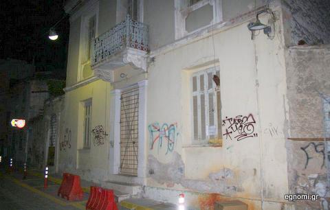 Μία επιγραφή προειδοποιεί τους περαστικούς (φωτό πάνω) για τον κίνδυνο που διατρέχουν, αλλά φυσικά δεν είναι αρκετή. Πρέπει το συντομότερο δυνατό να επισκευαστεί η σκεπή ή να κατεδαφιστεί το κτήριο, το οποίο είναι άλλωστε ετοιμόρροπο.
