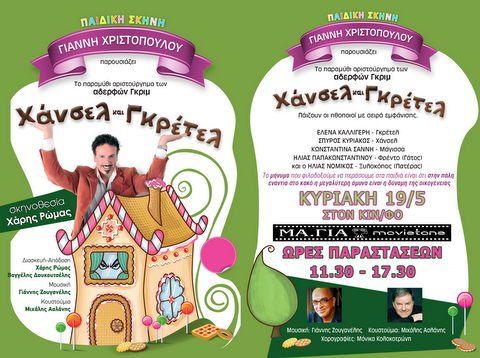 Η Παιδική Σκηνή του Γιάννη Χριστόπουλου μετά την πολύ επιτυχημένη παράσταση που έφερε στην Χαλκίδα πριν λίγο καιρό, "Ο Γύρος του κόσμου σε 80 ημέρες", αυτή τη φορά έρχεται και πάλι με ένα καινούργιο έργο, το παραμύθι "Χάνσελ και Γκρέτελ", όπου την σκηνοθεσία του έργου έχει κάνει ο δημοφιλής ηθοποιός και σεναριογράφος Χάρης Ρώμας.