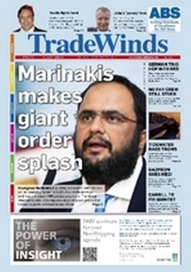 Το νέο επιχειρηματικό deal Βαγγέλη Μαρινάκη (φωτό δεξιά) προκάλεσε παγκόσμια αίσθηση και έγινε πρωτοσέλιδο στη γνωστή ναυτιλιακή εφημερίδα «TradeWinds» (φωτό κάτω). Ο πρόεδρος του Ολυμπιακού παρήγγειλε στόλο αξίας 500.000.000 δολαρίων!