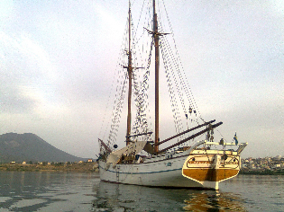 Η Ιστορική Σουηδική σκούνα της φωτογραφίας, ηλικίας 108 χρονών, έχει καταπλεύσει στο Νότιο κόλπο της Χαλκίδας για εργασίες επισκευής, που γίνονται με την καθοδήγηση μελών του μη κερδοσκοπικού σωματείου «Πρωτέας».
