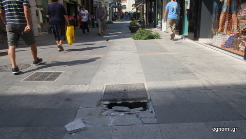 Ολόκληρη τρύπα στον πεζόδρομο