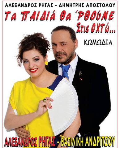 Η κωμωδία των Αλέξανδρου Ρήγα – Δημήτρη Αποστόλου «Τα Παιδιά θα ʽρθουνε στις Οχτώ…», με τους Αλέξανδρο Ρήγα και την Βασιλική Ανδρίτσου θα παρουσιαστεί στην Ερέτρια την Παρασκευή 16 Αυγούστου.