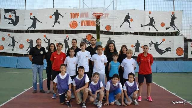 • Στη φωτό παιδιά που πήραν μέρος στο καμπ με μέλη της διοίκησης του Συλλόγου Νέων Αυλωναρίου στην επίσημη έναρξη του τουρνουά μπάσκετ που έγινε στο Αυλωνάρι