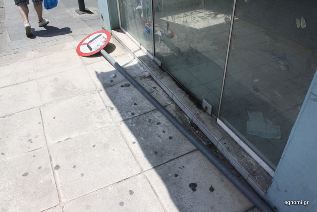Βγάλανε την πινακίδα και αντί να την πετάξουν, την άφησαν σαν ...αξιοθέατο πάνω στο πεζοδρόμιο. Φανταζόμαστε πως κάποιος άνθρωπος από το δήμο Χαλκιδέων ευθύνεται γι' αυτό, γιατί δεν θέλουμε να πιστέψουμε ότι πολίτης έβγαλε μόνος του την πινακίδα!