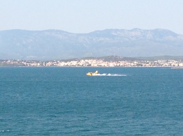 Στη φωτό αεροπλάνο κατά την προσθαλάσσωση για να εφοδιαστεί με νερό και να οδεύσει προς τη φωτιά.