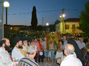Την παραμονή της γιορτής Δευτέρα 26 Αυγούστου τελέστηκε πανηγυρικός εσπερινός και λιτάνευση της ιερής εικόνας του Αγίου. Ανήμερα της γιορτής, την Τρίτη 27 Αυγούστου τελέστηκε ο Όρθρος και η Πανηγυρική Θεία Λειτουργία.