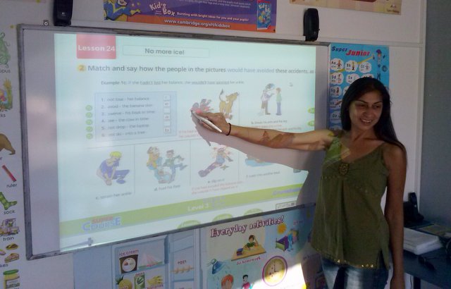 Η διδασκαλία πραγματοποιείται με συνδυασμό παραδοσιακών και σύγχρονων μεθόδων (στη φωτό η ιδιοκτήτρια Ελένη Ντάνου την ώρα που...δρα στο διαδραστικό πίνακα), αλλά κυρίως είναι η αγάπη για την αγγλική γλώσσα που κάνει τη διαφορά στο φροντιστήριο.