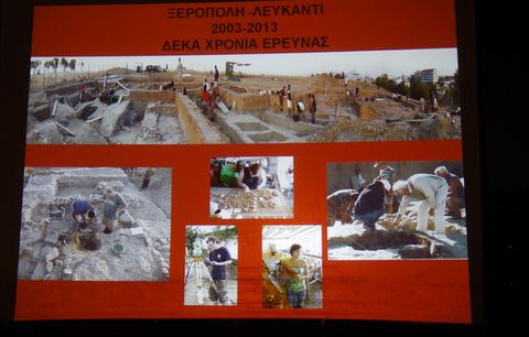 Οι συμμετέχοντες στην εκδήλωση, αφού ξεναγήθηκαν από τους αρχαιολόγους στο χώρο της ανασκαφής, παρακολούθησαν την παρουσίαση των σημαντικών ευρημάτων της αρχαιολογικής έρευνας στον αρχαίο οικισμό της Ξερόπολης και στο νεκροταφείο του στην Τούμπα.