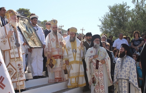 Την Τρίτη το πρωί συμμετείχαν στην Πολυαρχιερατική Θεία Λειτουργία και στη λιτανεία της θαυματουργού Ιερής Εικόνας πέριξ της Ιερής Μονής. Το μεσημέρι της Τρίτης αναχώρησαν για την Χαλκίδα.