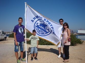 Το δήμαρχο Ερέτριας Βασίλη Βελέντζα εκπροσώπησε στα «Σαλαμίνια 2013» ο αντιδήμαρχος Χρήστος Διονυσόπουλος. Στη φωτογραφία ο Βασίλης Μιχελής, με την οικογένειά του, κρατάει τη σημαία του Δήμου, σε αναμνηστική φωτογραφία στη Σαλαμίνα.