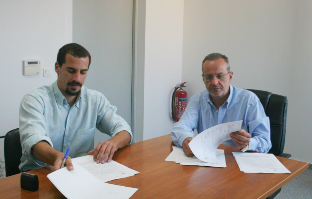 Στη φωτογραφία στιγμιότυπο από την υπογραφή της σύμβασης.