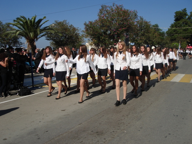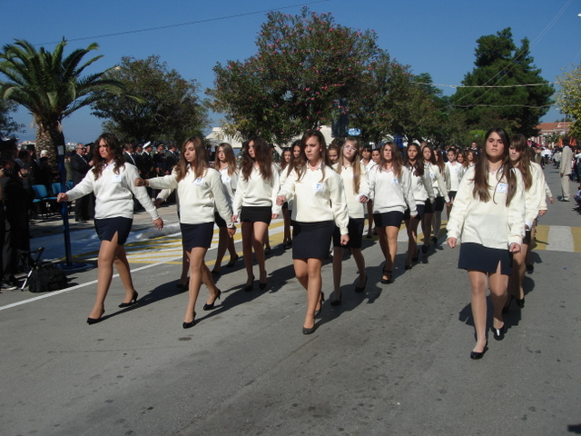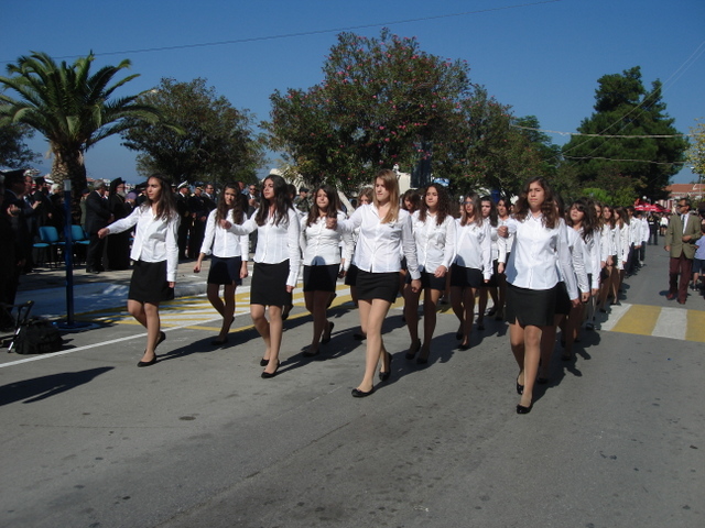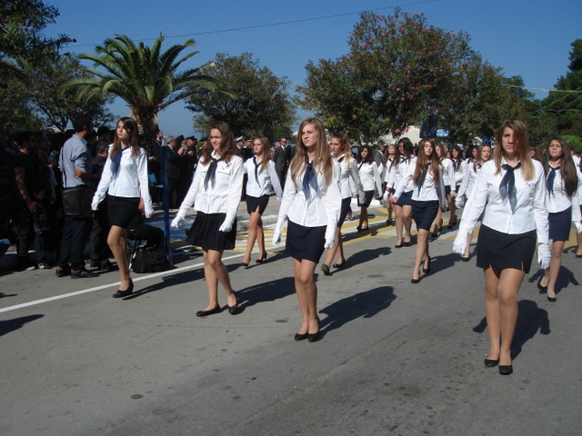 Ιδιαίτερα σικάτες ήταν οι μαθήτριες του Γυμνασίου Κανήθου με τις μπλε φούστες και τα μπλε φουλάρια (φωτό κάτω).