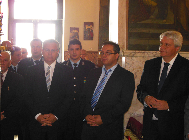 Στην φωτογραφία κάτω ο κ.Μαρκόπουλος και ο Δήμαρχος στον ιερό ναό κατά τη διάρκεια της δοξολογίας.