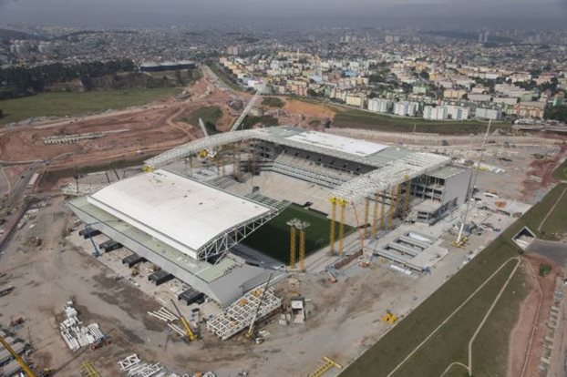 Το γήπεδο, το οποίο είχε προγραμματιστεί να ολοκληρωθεί τον επόμενο μήνα, βρίσκεται στην πλευρά της πόλης όπου η διοργανώτρια Βραζιλία θα δώσει το εναρκτήριο ματς του Μουντιάλ 2014.