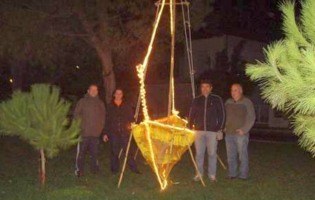Στη φωτογραφία πάνω η φάτνη στην κεντρική πλατεία. Διακρίνονται οι Νικολέτα Πολύχρονου, Αντώνης Σακαράκης, Χρήστος Μπακρής και παιδιά του Συλλόγου. Στη φωτό κάτω το παραδοσιακό καράβι. Διακρίνονται οι Νικολέτα Πολύχρονου, Αντώνης Σακαράκης, Πέτρος Πορτοκαλίδης και Ευάγγελος Κυριακόπουλος.