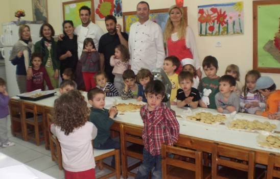 Τα παιδιά του Β΄ Βρεφικού Παιδικού Δημοτικού Σταθμού και Νηπιαγωγείου Χαλκίδας έχουν την τύχη ένα από τα παιδάκια του σταθμού να έχει πατέρα τον επαγγελματία σεφ Μανόλη Παλαιτσάκη, ο οποίος πήρε την πρωτοβουλία να τους δείξει τα … μυστικά του επαγγέλματος.