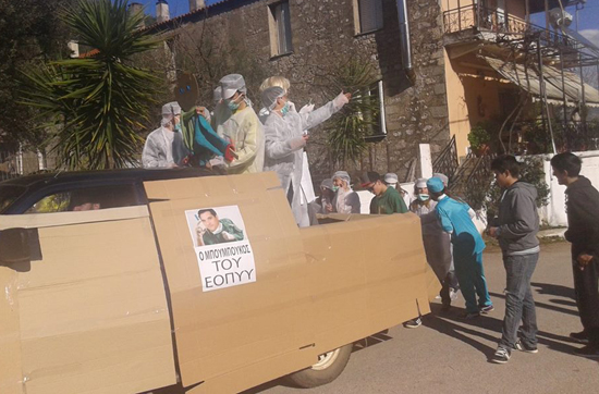 Μαθητές ντύθηκαν γιατροί και έφτιαξαν ολόκληρο άρμα αφιερωμένο στον "Μπουμπούκο του EOΠYY", όπως βλέπετε και στη φωτό πιο κάτω...