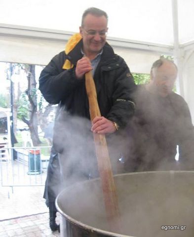 Η φωτογραφία που βλέπετε δείχνει τον Δήμαρχο Χαλκίδας Θανάση Ζεμπίλη να ανακατεύει την φασολάδα, στην πλατεία του Αγίου Νικολάου της Χαλκίδας, την Καθαρά Δευτέρα.