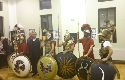 Στη διάρκεια της εκδήλωσης οι μαθητές είχαν την ευκαιρία να δουν από κοντά "αρχαίους πολεμιστές". Επρόκειτο για μέλη του Συλλόγου ιστορικών μελετών κι αναπαραστάσεων, οι οποίοι είχαν ντυθεί και εξοπλιστεί όπως ακριβώς και οι πολεμιστές της οπλιτικής φάλαγγας των αρχαίων Ελλήνων.