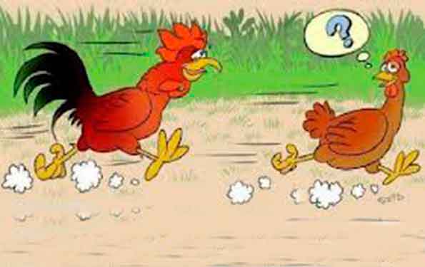 Ήταν μια φορά μια κότα και την κυνηγούσε ένας κόκορας που ήθελε να την πηδήξει.