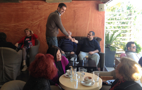 Το Σάββατο 22 Μαρτίου περιόδευσε στον Ορχομενό, όπου πήρε … σβάρνα τις καφετέριες και χαιρετούσε τους θαμώνες, οι οποίοι τον κοίταγαν με αμηχανία ή δεν έδιναν καθόλου σημασία, όπως βλέπετε και στη φωτογραφία.