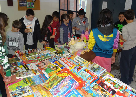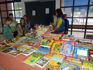 Στο χώρο του σχολείου έχουν συγκεντρώσει χρησιμοποιημένα βιβλία και παιχνίδια και προσπαθούν να τα πουλήσουν για να αυξήσουν τα έσοδα του συνεταιρισμού τους. Tα έσοδα θα χρησιμοποιηθούν για να καλυφθούν εκπαιδευτικές ανάγκες.