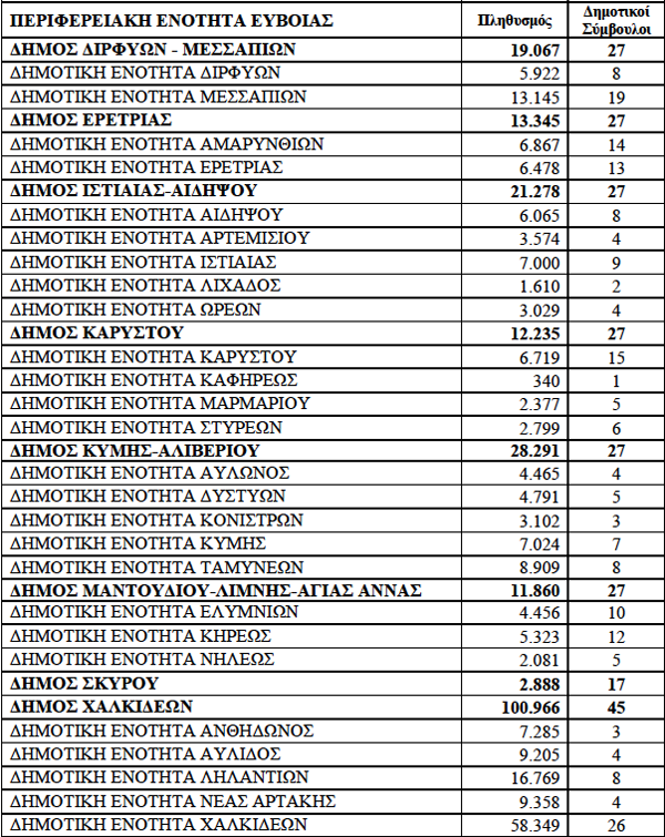 Δείτε αναλυτικά στον πίνακα που ακολουθεί πόσοι εκλέγονται ανά δήμο και ανά δημοτική ενότητα...
