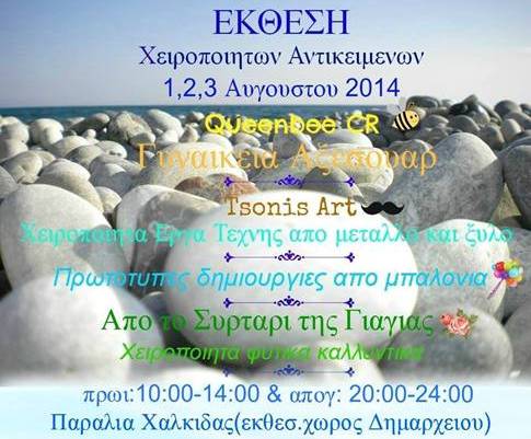 To πρώτο τριήμερο του Αυγούστου (Παρασκευή, Σάββατο και Κυριακή) πραγματοποιείται έκθεση χειροποίητων αντικειμένων στον Εκθεσιακό χώρο του Δημαρχείου Χαλκίδας, στην παραλία της πόλης.