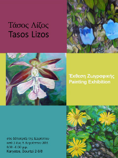 Τις δημιουργίες του Τάσου Λίζου θα συμπληρώσει σειρά έργων της ζωγράφου Ελεονόρας Μητροβγένη. Η έκθεση θα διαρκέσει έως την Παρασκευή 8 Αυγούστου και οι ώρες λειτουργίας της είναι από τις 8:30 μέχρι τις 11:30 το βράδυ.