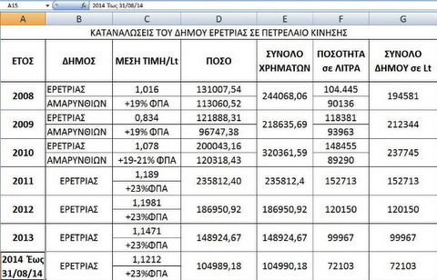 Δίνω στη δημοσιότητα την εικόνα κατανάλωσης καυσίμων των πρώην Καποδιστριακών Δήμων, Αμαρυνθίων και Ερέτριας για τα έτη 2008 έως 2010, και του Καλλικρατικού Δήμου Ερέτριας, από το 2011 έως και σήμερα.