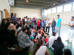 Ιδιαίτερη αίσθηση στους μαθητές έκανε η παρουσία δυο γνωστών αθλητών. Ο αθλητής του μπάσκετ του Γυμναστικού Συλλόγου Κύμης Σωκράτης Γκιζόγιαννης πήρε μέρος στο διαγωνισμό τριπόντων και μίλησε για το θέμα του ρατσισμού στους μαθητές.