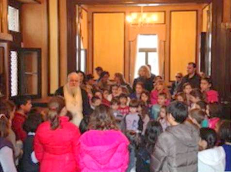 Τα παιδάκια των χορευτικών ομάδων, το διδακτικό προσωπικό και τις επικεφαλής του τμήματος, παρουσία της προέδρου του Λυκείου ευλόγησε ο αρχιμανδρίτης π. Γρηγόριος Κλεούδης.