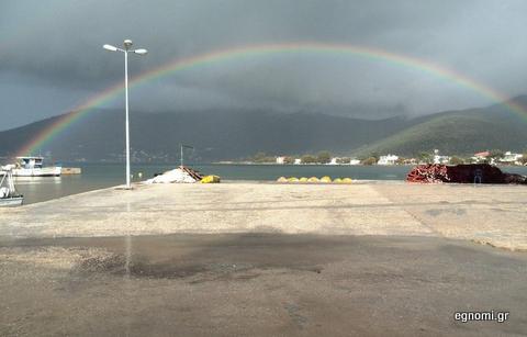 Επισκέπτης του egnomi.gr μας έστειλε την καταπληκτική φωτογραφία που βλέπετε. Είναι τραβηγμένη στη νότιο Εύβοια, το Σάββατο 6 Δεκεμβρίου, στο λιμάνι του Αλμυροπόταμου, το οποίο απέκτησε ξαφνικά πολύχρωμη αψίδα, που δεν είναι άλλη από το ουράνιο τόξο.