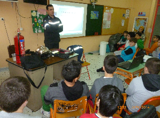 Οι μαθητές έμαθαν τις ενέργειες που πρέπει να κάνουν αν αντιληφθούν πυρκαγιά και το πώς δουλεύουν οι πυροσβεστήρες. Μετά μίλησαν για τους σεισμούς και την αντισεισμική προστασία. Είδαν φωτογραφίες και παρακολούθησαν βίντεο με πυρκαγιές.
