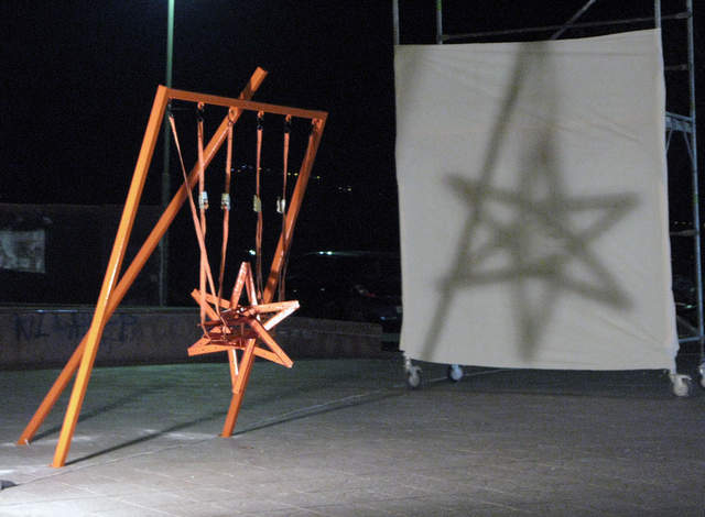 Το καινούριο γλυπτό είναι μεταλλικό πορτοκαλί αστεροειδές και παραπέμπει στο Αστρο των Χριστουγέννων. Και τα δύο έργα του καλλιτέχνη συμπεριλαμβάνονται στο 1ο Φεστιβάλ Φωτός Ελλάδας, το οποίο θα πραγματοποιηθεί στα Ιωάννινα, από τις 29 έως τις 31 Δεκεμβρίου.