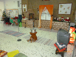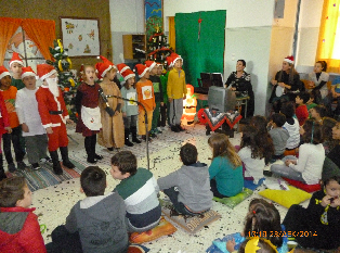 Επίσης είχε δύο χριστουγεννιάτικα δέντρα ,ένα κανονικό κι ένα πολύ περίεργο στολισμένο με ...φρούτα! Το θεατρικό της Δευτέρας τάξης είχε για πρωταγωνιστές τη μπανάνα , το μήλο και το ρόδι που ήταν στα ... πάνω του, λόγω των ημερών.