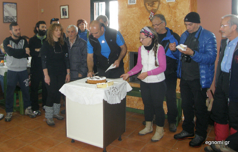 Ο πρόεδρος του Ορειβατικού Συλλόγου Ταξιάρχης Κοκονός, μετά από τις ευχές και ένα μικρό απολογισμό των δραστηριοτήτων του Συλλόγου το 2014, έκοψε την πίτα. Ακολούθησε γεύμα με την παραδοσιακή φασολάδα και σπετσοφάι και το κέφι ανέβηκε με άφθονο κρασί.