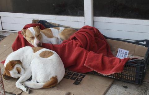 Την πολύ όμορφη εικόνα της φωτογραφίας συναντήσαμε και απαθανατίσαμε στην παλιά Αγορά της Χαλκίδας, από την πλευρά της οδού Κριεζώτου. Είναι φανερό ότι κάποιοι ζωόφιλοι Χαλκιδέοι φρόντισαν να χαρίσουν ζεστασιά και θαλπωρή στα σκυλάκια της φωτογραφίας.