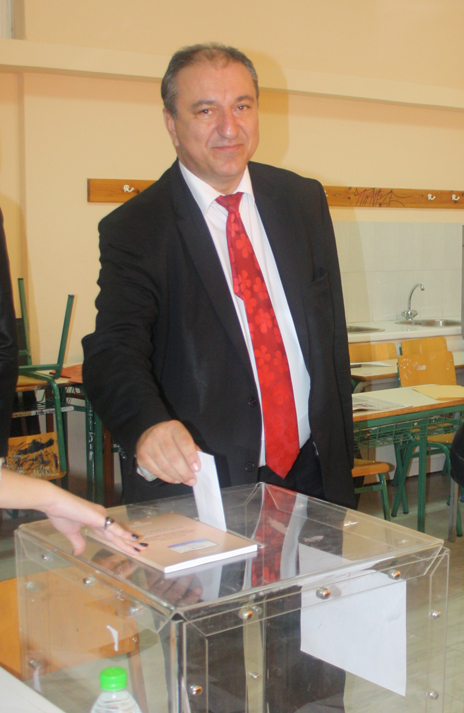 Χαμογελαστός ψήφισε στο Λύκειο της Κανήθου ο Θανάσης Τάρτης και περιμένει τώρα τα εκλογικά αποτελέσματα, που μπορεί και να τον φέρουν στη Bουλή με το ΠAΣOK.