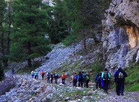 Σε δύο ώρες έφθασαν στην πηγή "Κράτεια" (υψόμετρο 700 μέτρα) με τα τεράστια πλατάνια. Μετά από λίγη ξεκούραση με ανανεωμένες δυνάμεις συνέχισαν την πορεία στο μονοπάτι μέσα στα έλατα και σε 1,5 ώρα ολοκλήρωσαν την πορεία φθάνοντας στον επαρχιακό δρόμο που οδηγεί στην Γλυφάδα (υψόμετρο 1100 μέτρα).