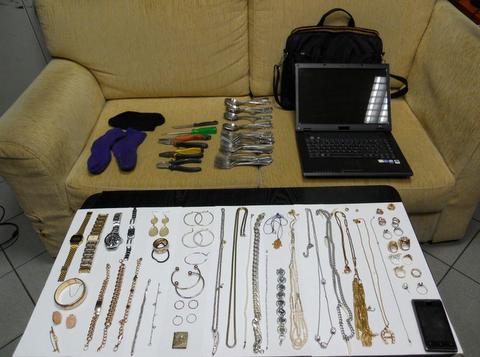 Μέσα στο αυτοκίνητο βρέθηκαν πλήθος κοσμημάτων, ένας φορητός ηλεκτρονικός υπολογιστής και άλλα αντικείμενα, τα οποία στο πλαίσιο της αστυνομικής έρευνας προέκυψε ότι οι δράστες είχαν νωρίτερα το απόγευμα από το σπίτι της 36χρονης.