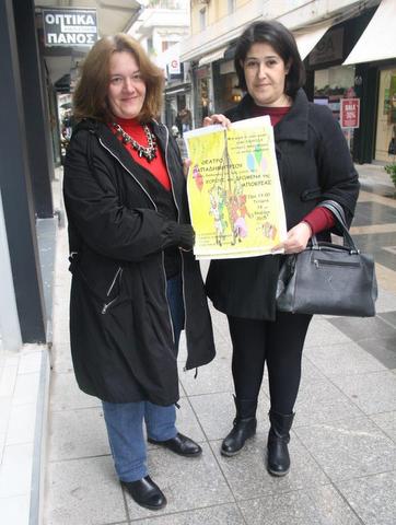 Η εκδήλωση πραγματοποιήθηκε στο Θέατρο Παπαδημητρίου και περιλάμβανε χορούς και θεατρικά δρώμενα. Στη φωτογραφία οι δύο κυρίες μας δείχνουν την αφίσα αναγγελίας της εκδήλωσης.