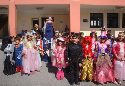 Ντυμένοι με αποκριάτικες στολές, οι μαθητές τραγούδησαν και στο τέλος της εκδήλωσης που έγινε στο σχολείο τους, έκαψαν το βασιλιά Καρνάβαλο με τον παραδοσιακό τρόπο.