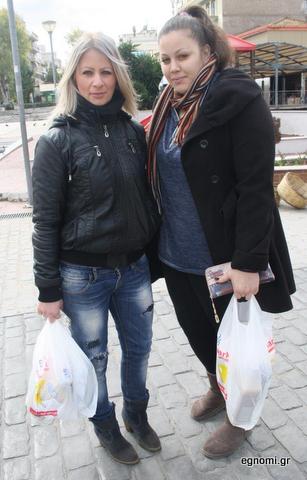 Οι κυρίες της φωτογραφίας είναι η Κυριακή Τριανταφυλλίδου και η Ρούλα Χατζηλέρη, τις οποίες συναντήσαμε ενώ επέστρεφαν από ψώνια για το σπίτι. Συγκεκριμένα είχαν επισκεφτεί κατάστημα απορρυπαντικών, όπου προμηθεύτηκαν τα απαραίτητα για το νοικοκυριό τους.