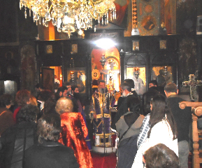 Το παρεκκλήσι πανηγύριζε στη μνήμη των αγίων Μαρτύρων Χρυσάνθου και Δαρείας. Ο Μητροπολίτης τέλεσε την Προηγιασμένη Θεία Λειτουργία με συλλειτουργούς τους συνοδούς του Κληρικούς και τους Εφημέριους της Ενορίας, Αρχιμανδρίτη Χρυσόστομο Καλύβα, Πρωτοπρεσβύτερο Ηλία Αγιαννίτη και Οικονόμο Χαράλαμπο Ταραμίγκο.
