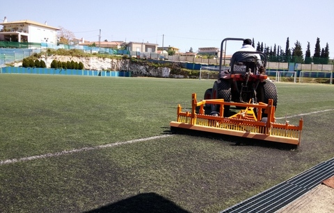 Μηχάνημα συντήρησης του χλοοτάπητα στα γήπεδα της Χαλκίδας