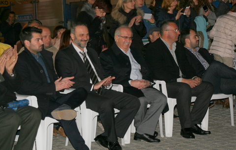 Χαμογελαστοί καμάρωσαν τα παιδιά, που συμμετείχαν στην εκδήλωση για την απελευθέρωση της Εύβοιας από τον τουρκικό ζυγό, ο βουλευτής Εύβοιας των Ανεξαρτήτων Ελλήνων Νίκος Μαυραγάνης και ο Δήμαρχος Χαλκιδέων Χρήστος Παγώνης.