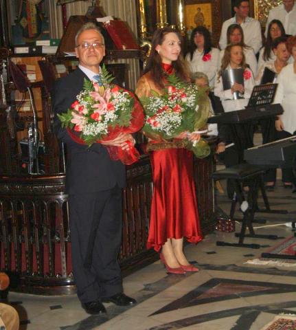 Στη φωτογραφία κάτω ο μαέστρος Παύλος Κουρμπέτης και η πιανίστα Μορφούλα Μηνά.